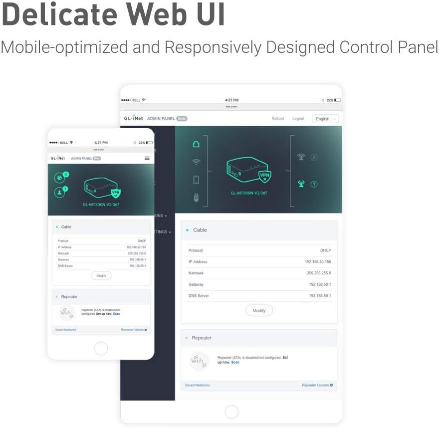 Mini router da viaggio senza fili: converte le reti pubbliche (cablate/wireless) in Wi-Fi privato e naviga in Internet in tutta sicurezza. Design compatto: solo 39 grammi, ideale da portare con sé. Fornisci accesso a Internet 3G,4G a più utenti ovunque tu abbia copertura di rete Open source e programmabile: OpenWrt preinstallato, sbloccato, estremamente espandibile in funzioni, perfetto per progetti fai da te. 16 MB NOR + 128 MB di RAM, disco USB extendable.Due porte Ethernet, UART e GPIO disponibili per hardware fai da te. 【Open VPN CLient&Privacy】 OpenVPN preinstallato,compatibile con oltre 30 provider di servizi VPN. Più stabile,Proteggi la tua privacy online sempre e ovunque Contenuto della confezione: mini router GL-MT300N-V2 (Mango) (1 anno di garanzia), cavo USB, cavo Ethernet, manuale utente con la nostra meravigliosa richiesta.